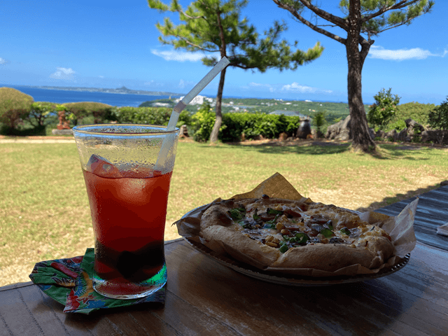 ホテルがメインの旅ではありましたが、このときはたまたま友人が同じ時期に沖縄にいて車を出してくれたので、久々に本部町の花人逢にピザを食べにきました。ここのピザは絶品で、景色も素晴らしいです。美ら海水族館に行かれる際はぜひいってみてください。