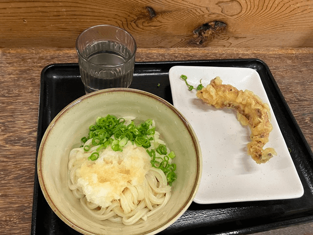 2日目のうどん一件目は丸亀のなかむらうどん。 ここはセルフタイプのお店です。かまたまうどんが名物ですが、昨日食べたのもあり、ここでは醤油うどんをいただきました。