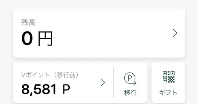 実際の交換の仕方ですが、Vポイントアプリの【移行】をまずタップします。