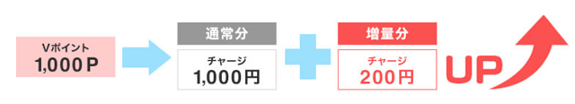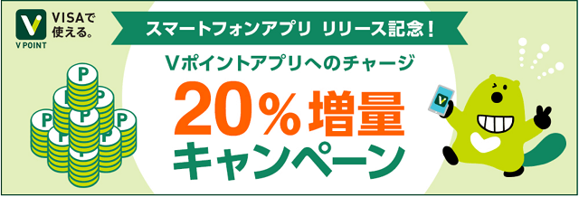 最後に紹介するキャンペーンは、三井住友カード等で貯めた 例えば、Vポイントが1,000ポイントあったとして、これをアプリ(プリペイド)にチャージすると、1,200円分がチャージされます。先ほどのカードからのチャージのキャンペーンと異なり