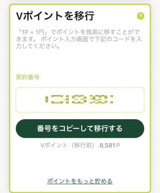 すると、10桁の契約番号がでてきます。あとでこの番号を入力する必要があるので、【番号をコピーして移行する】をタップします。