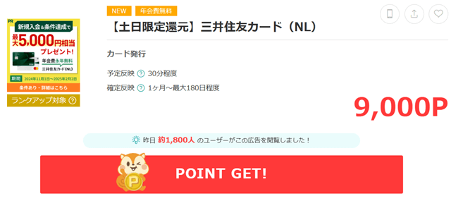 今回紹介した三井住友カードナンバーレスですが、ポイントサイトを経由して発行をすると、ここまで紹介したVポイントのキャンペーンとは別に、9,000円相当のポイントを獲得することができます。